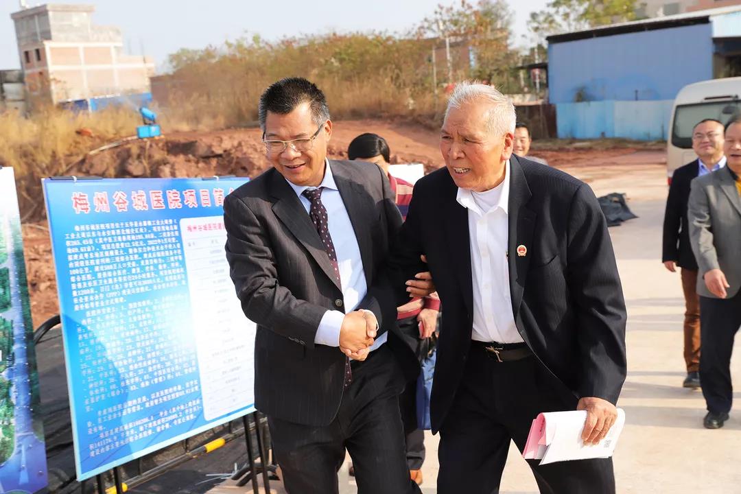 12月22日,廣東省老促會會長陳開枝、廣東省老促會常務(wù)副會長林華景、廣東省老促會副會長兼秘書長姚澤源、廣東省老促會副會長胡朝杰、梅州市老促會會長羅德宜、五華縣委常委劉敬東、衛(wèi)生健康局局長劉旭倫、五華縣老促會會長鐘賜傳等一行蒞臨梅州谷城醫(yī)院項目現(xiàn)場調(diào)研。谷城集團(tuán)董事長賴友谷、總裁肖大志、建設(shè)項目總經(jīng)理陳立寶等陪同調(diào)研。