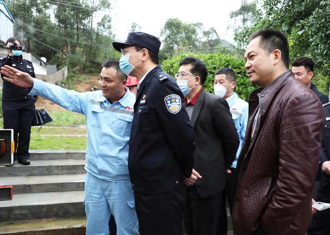 4月6日,清遠(yuǎn)市政府黨組成員、副市長(zhǎng),市委政法委第一副書(shū)記,市公安局黨委書(shū)記、局長(zhǎng)、督察長(zhǎng)畢洪波等領(lǐng)導(dǎo)蒞臨谷城礦業(yè)調(diào)研指導(dǎo)。谷城集團(tuán)執(zhí)行董事總裁肖大志、副總裁賴志興、張滿宗、副總裁兼谷城礦業(yè)總經(jīng)理賴志長(zhǎng)、爆破合作單位宏大爆破公司總經(jīng)理謝守冬等陪同,并對(duì)領(lǐng)導(dǎo)一行的到訪表示熱烈歡迎,參加調(diào)研的還有清遠(yuǎn)市公安局治安巡警支隊(duì)副支隊(duì)長(zhǎng)綦尤強(qiáng)、副區(qū)長(zhǎng)、清新公安分局局長(zhǎng)葉軍強(qiáng)等。